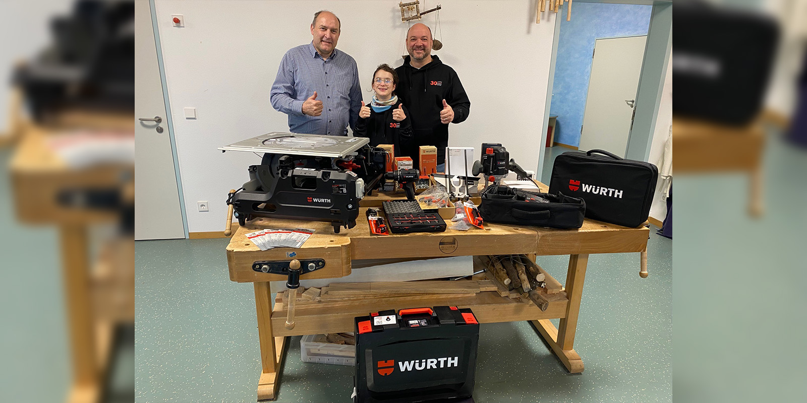 Die Sachspende umfasst unter anderem verschiedene Akku-Bohrschrauber, eine Kapp- und Tischkreissäge sowie ein Holzfräser-Sortiment. Ergänzt wurde das Paket durch zahlreiche Universal-Schrauben in unterschiedlichen Ausführungen, Zangen, Spiralbohrer und Diamantscheiben aus dem Würth Sortiment. Mit dem neuen Equipment kann die Holzwerkstatt der Schule weiter ausgebaut und praxisnaher Unterricht noch gezielter umgesetzt werden.